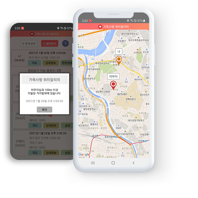 이탈하면 자신의 휴대폰에 알림이 울리게 됩니다.