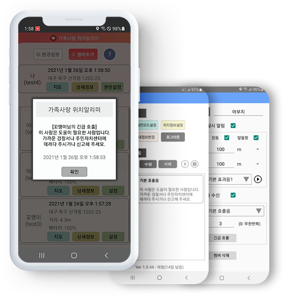 가족사랑 위치알리미는 치매노인,아동의 관리 및 보호를 위하여 만들어졌습니다.